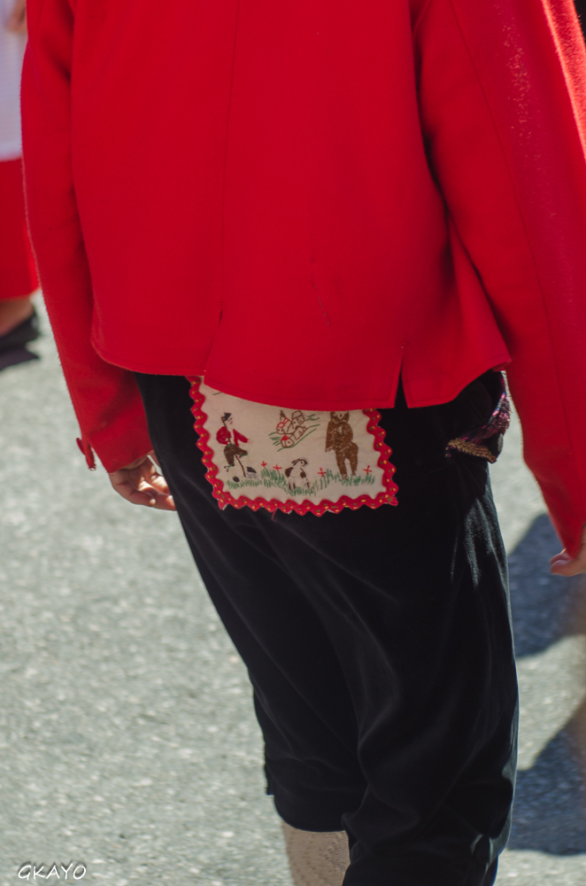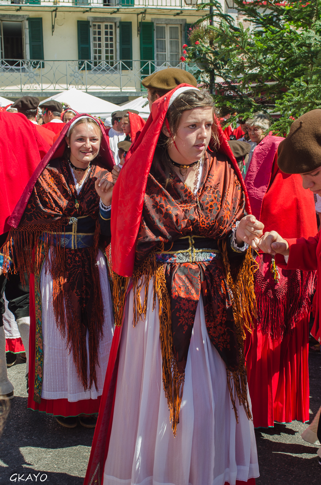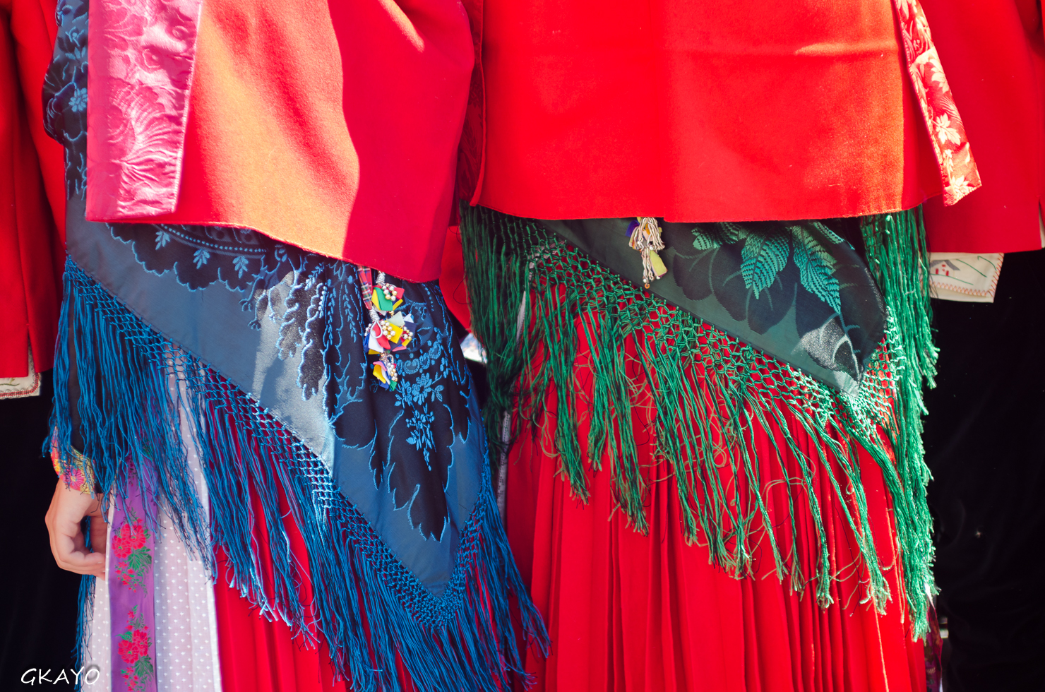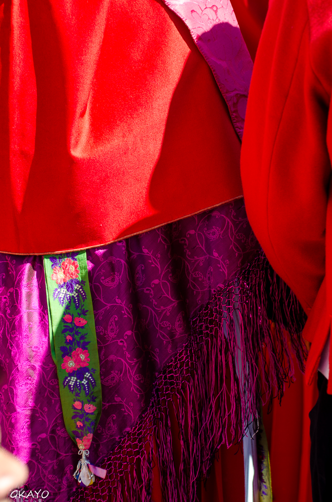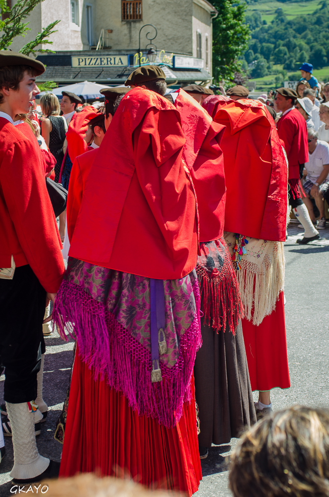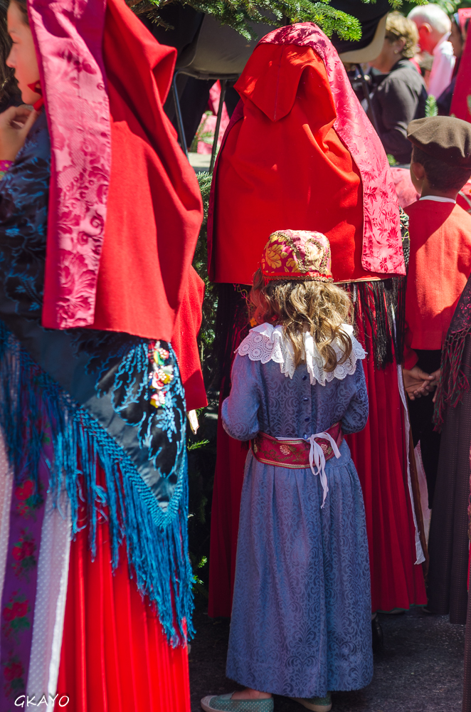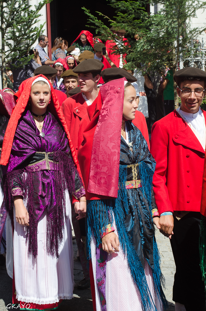 Les costumes sont la propriété de chaque famille de résidents de la vallée. On pourra remarquer les caractéristique communes, couleurs et formes des pièces essentielles , et les détails différents sur certains éléments, châles chaussettes, coiffes, etc…
