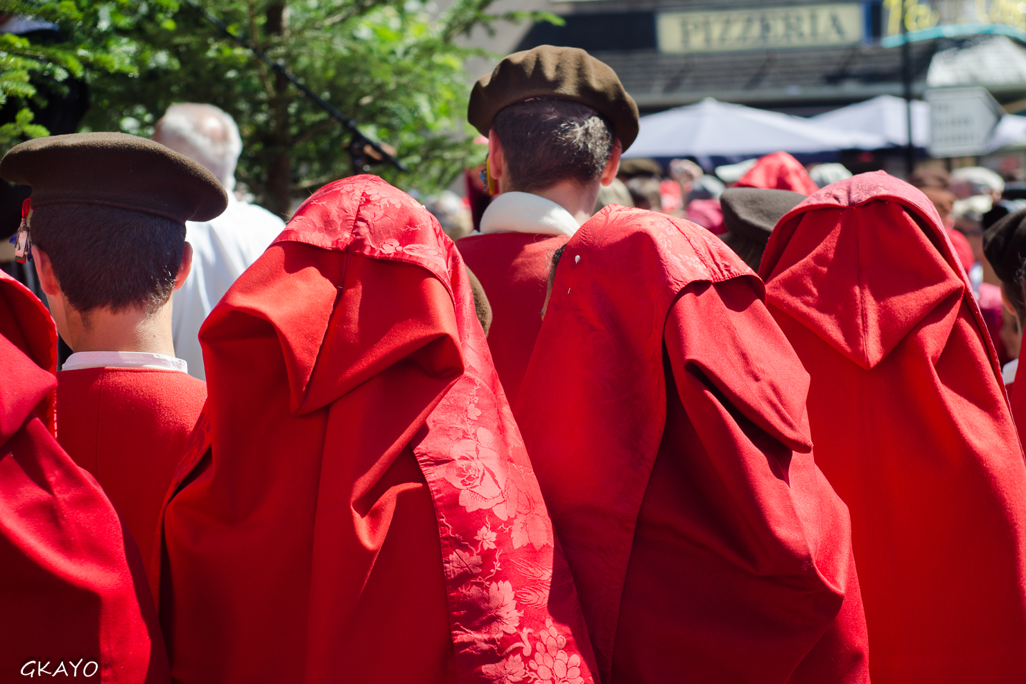 Le matin les musiciens vêtus de noir accompagnent les baladins vêtus de rouge et font une quête dans les rues. Par la suite les personnes en costume ossalois chantent des cantiques modernes ou traditionnels en polyphonie au chœur de l’église.